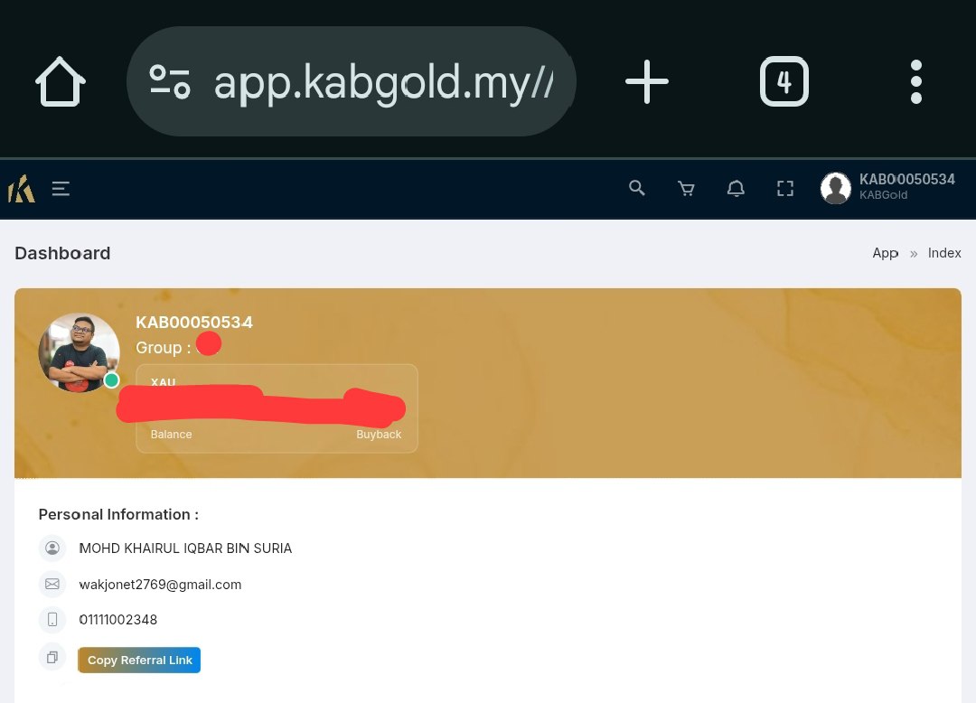 Dah berjaya daftar akaun KAB Gold wasap saya untuk claim :-