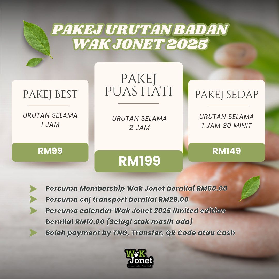 ✅ 3 Offer giler ini special untuk customer Wak Jonet yang dah pernah urut dengan Wak Jonet sahaja pada tahun 2024 & 2025 sahaja.